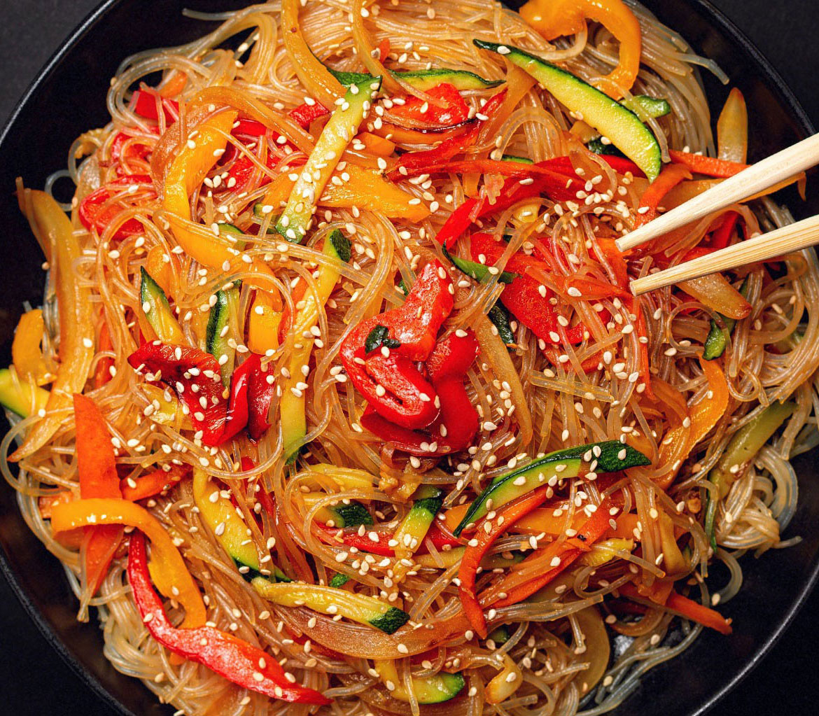 Täyteläinen ja ruokaisa aasialaistyylinen salaatti, joka on valmistettu läpikuultavista lasinuudeleista ja mureasta broilerin fileestä sekä tuoreista vihanneksista, kuten porkkanasta, makeasta paprikasta ja sipulista. Ainekset kuullotetaan kevyesti ja sekoitetaan valkosipulin, soijakastikkeen ja aromaattisen seesamiöljyn kanssa, mikä antaa salaatille syvän ja täyteläisen maun. Halutessa mukaan voidaan lisätä ripaus chiliä antamaan mietoa tulisuutta, ja paahdetut seesaminsiemenet sekä tuore kevätsipuli viimeistelevät annoksen miellyttävällä pähkinäisellä vivahteella ja raikkaudella.